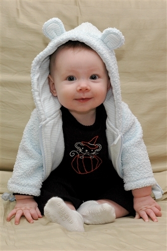 You’re a monkey in my arms, and have been ever since you could move. As a newborn you would hold your head up. At just a few weeks old you would kick the chair arm to propel yourself sideways. You can’t crawl yet so you settle for draping your body over mine, then pushing, kicking, pulling and rolling all over me. With the requisite slobber-on-arms-and-shirt, of course. You make a lot of noise while doing it, too, lots of “Aaahhhhhhhhh”s and high-pitched “shreeeeeee”s. You haven’t really figured out any consonants yet, but you make quite varied use of vowels and raspberries. My favorite is when you hang over my arms, half roll over so your head is hanging back, and then you smile up at me, reaching out to touch my face. And then you blow a raspberry, just because you can.