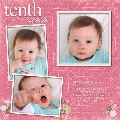 Between the me-sick and her-teething I’m getting pretty much no sleep. In the middle of the night when she wakes up sore and very unhappy I’m just pulling her into the futon with me… she’s just so sad. :( She doesn’t even necessarily want to nurse, but she wants the boob… a few times she has kept the paci in and fallen asleep using my boob as a pillow. It’s her “if all else fails” comfort object. She’s also nursing frequently during the day – and by frequently I mean tugging on my shirt every 10 minutes and crying if she’s not allowed to see the boobie. And again, she’s barely nursing, she doesn’t even care to be latched, she apparently just wants to see and touch the boobie. Last month she was only nursing four times a day, so clearly this is related to her feeling miserable. It’s still annoying when I’m trying to get something done, but I’m glad I can do something to help her feel better.