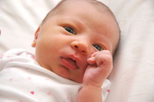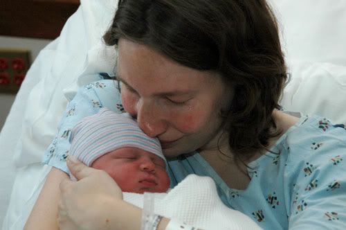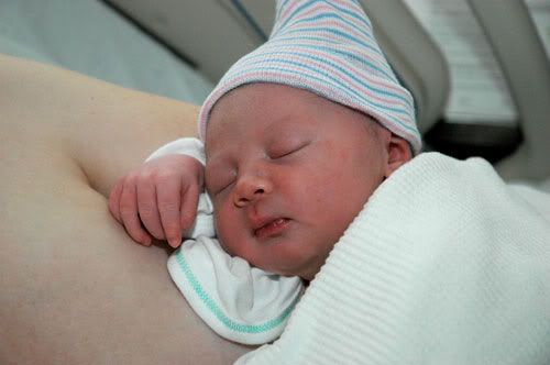 They cleaned her up a little bit, cleaned her airways (she sounded a little gunky), put a blanket over us. Den got really teared up. I just held her and stared, in a very overwhelmed kind of shock and relief that I gave birth to a live baby.