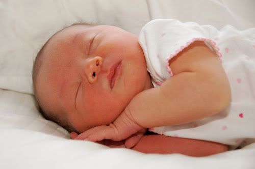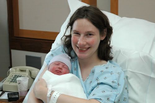 Now I was never very thrilled with this idea of driving to the hospital while having labor contractions. But I never even considered the fact that I could be driving to the hospital while having pushing contractions. Right away I knew what they were – my body was bearing down with or without me, and I did NOT want to have that baby in the vehicle. I gripped the door handle with my right hand and Den’s arm with my left hand, and every contraction had me writhing, kicking, and crying in pain. I had to bear down to make the pain tolerable, but I was trying so hard just to make “grunty pushes” like I read in the books, where you’re bearing down only a little bit and not really trying to push. I so did not want to push. Halfway through the drive I felt and heard a “pop” and there was a gush between my legs of my water breaking. In between contractions – during which time I felt fine, but could feel a lot of pressure between my legs – I called the midwife to tell her that we were coming in, I was in pain and feeling pushy and I wasn’t sure I was going to make it. She said she’d meet me downstairs. Then I called my mom after the next contraction – I had promised her I’d call her when I was in labor, and when “labor” hit at 3am I didn’t want to wake her and have her sleepless for a long time (haha, again), so I’d put it off. I called, she answered, I basically blurted out that I was in labor, it’s going fast, it hurts, I’ll call you when she’s born, have to go. Mom was crying – I’m sure part out of excitement, part out of fear of another bad ending – and told me she loved me.
